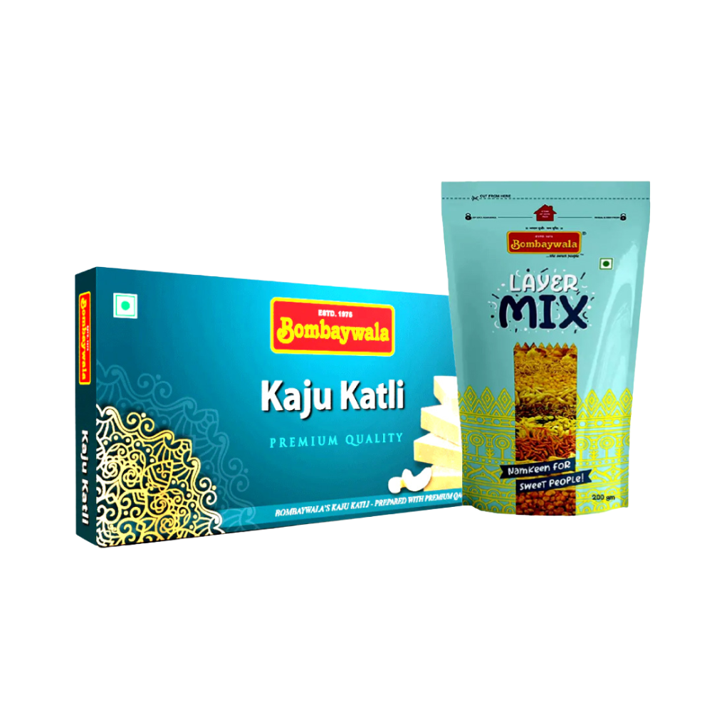 A perfect mix of tradition and crunch. This combo brings together rich, melt-in-the-mouth Kaju Katli (250g) and our all-time favourite Layer Mixture (400g). Sweet and savoury in one box, just the way celebrations should be. Ideal for sharing, gifting, or simply treating yourself.